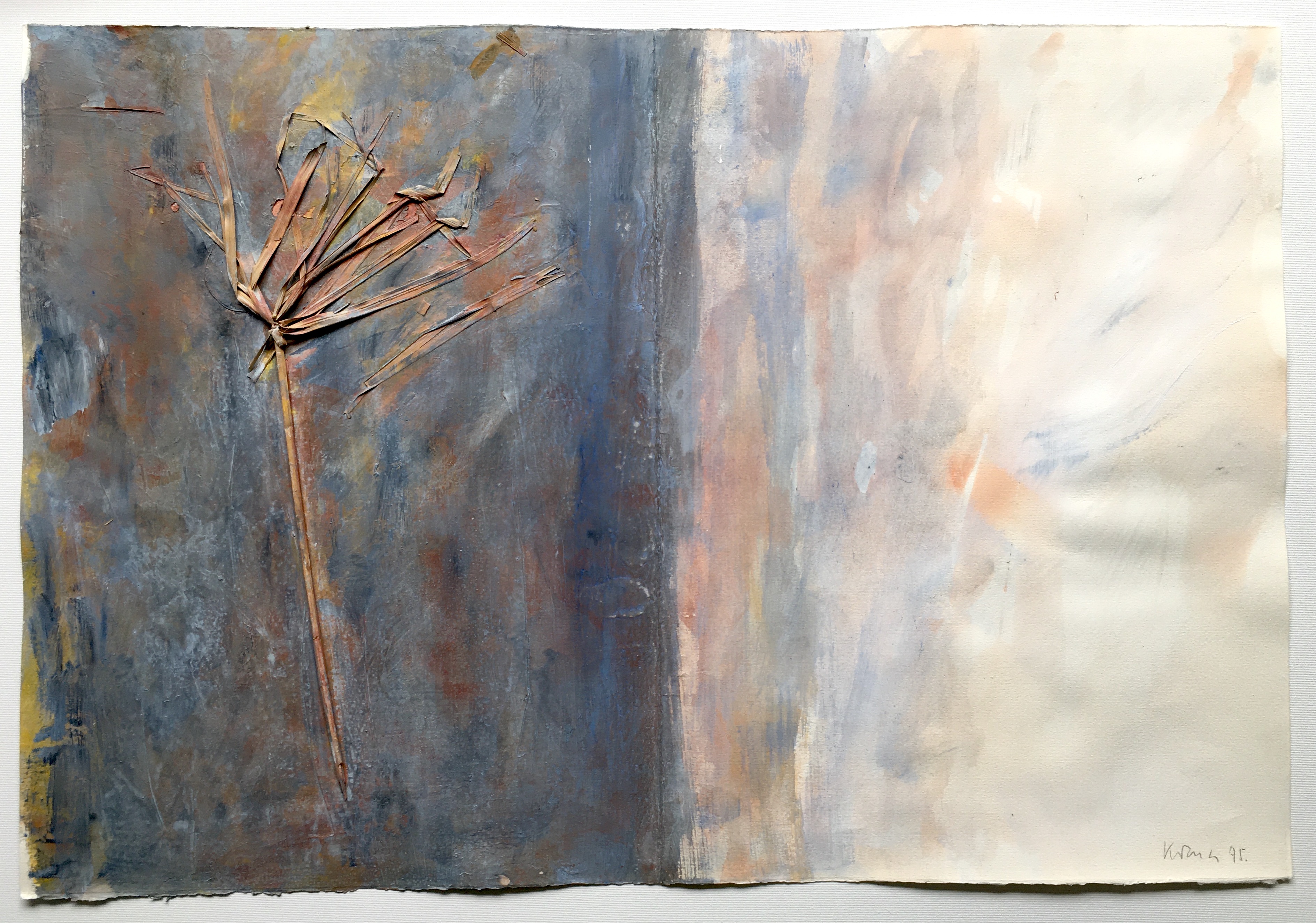Acryl / Schilfhalm montiert auf Büttenpapier, 54 x 79 cm